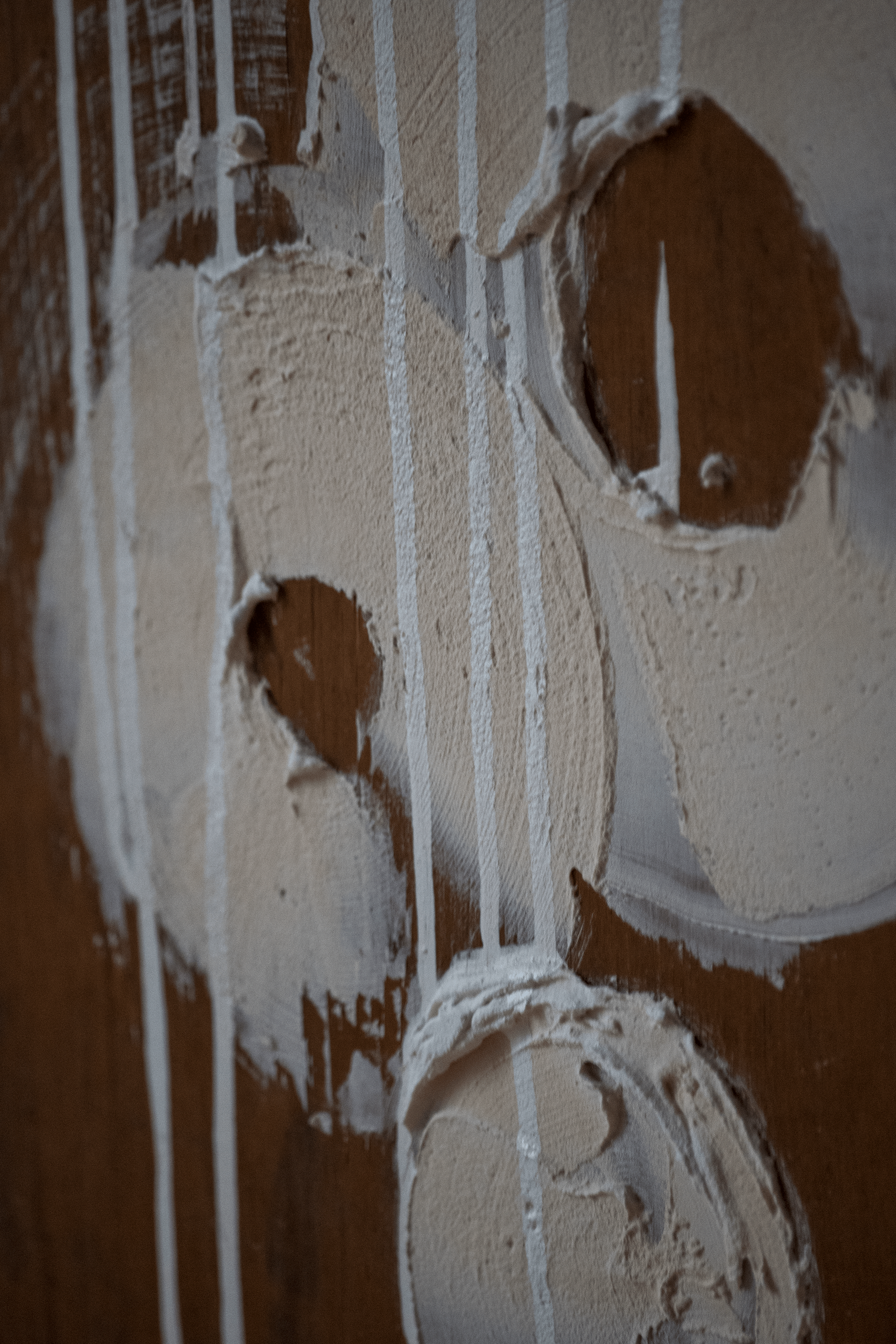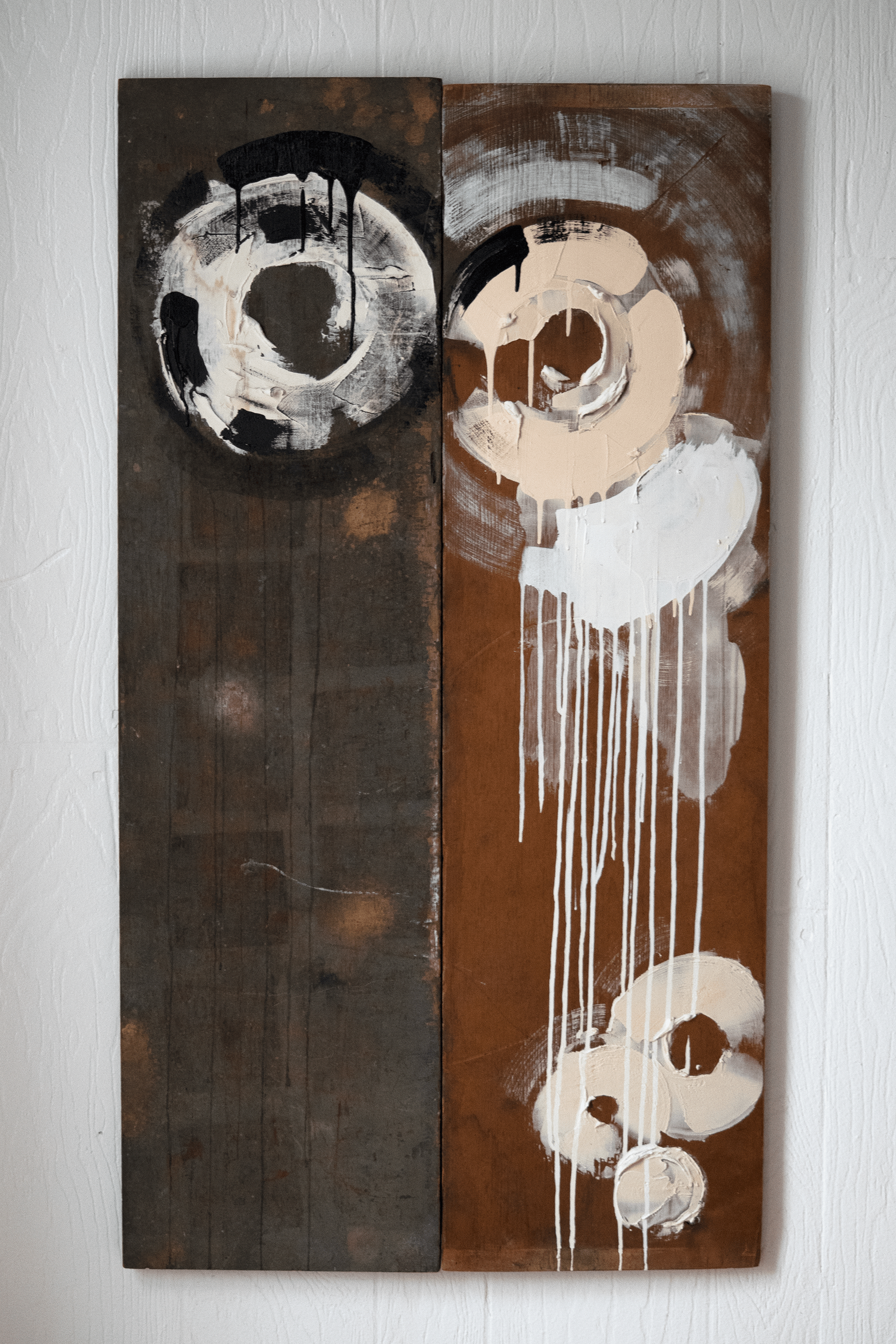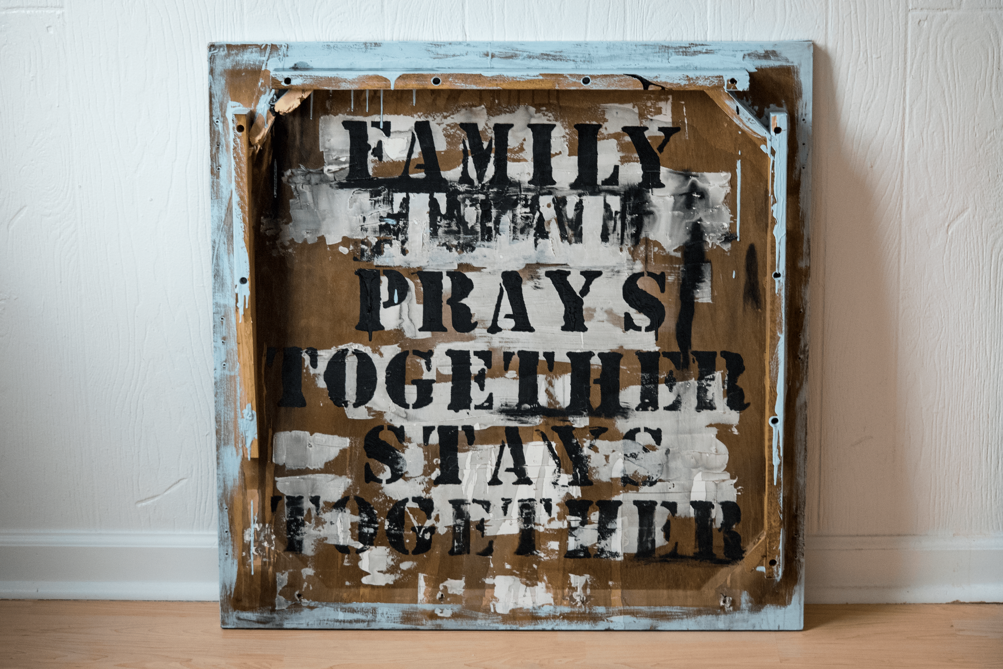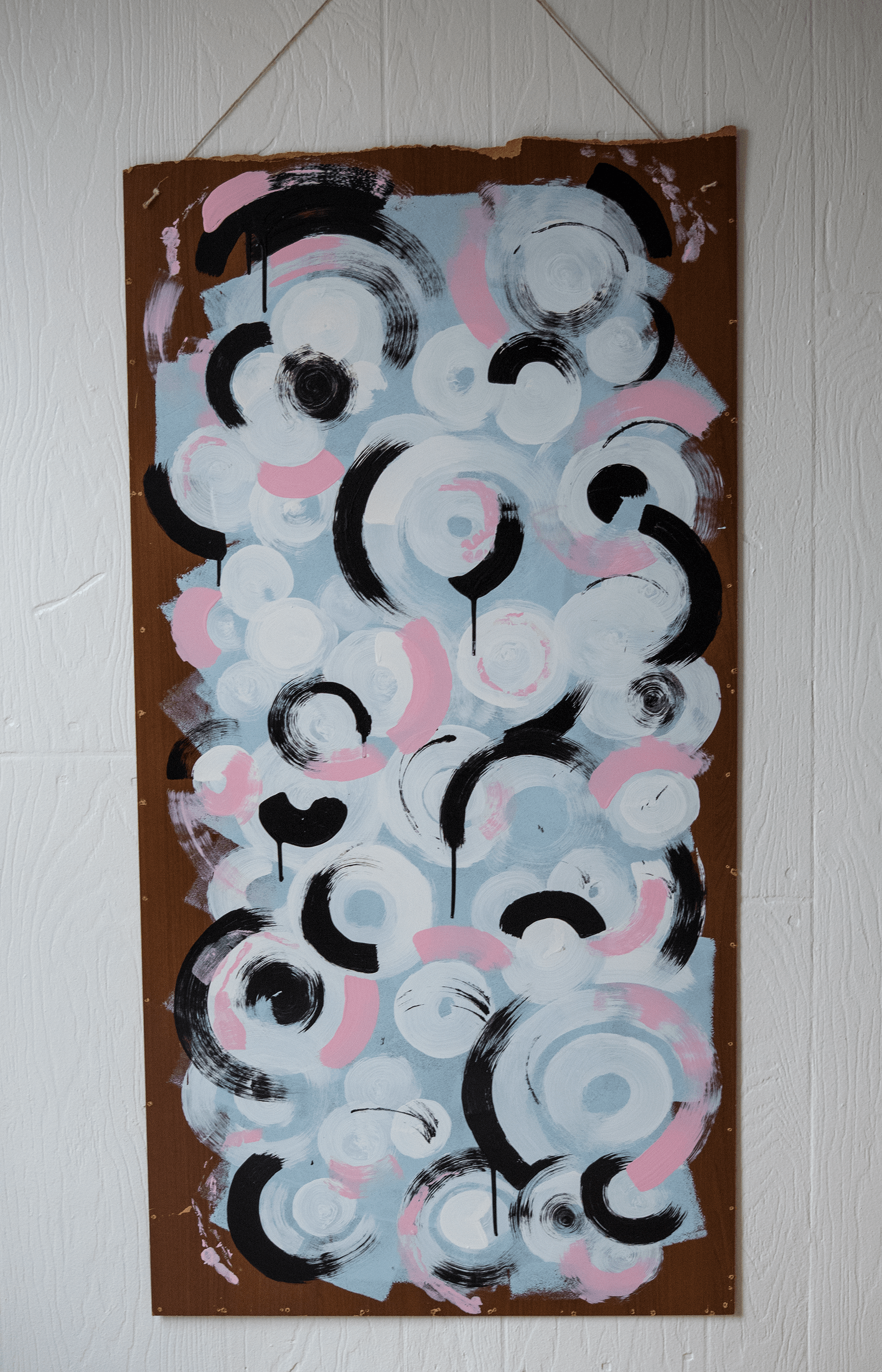 Looking for free things to paint on I unknowingly grabbed two table tops. One from a kitchen table and the other from one of those folding TV trays. When I realized what I had, this series began.